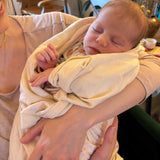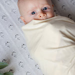 This Dream Baby Blanket or Swaddle Blanket is made with buttery soft TENCEL™ Lyocell Organic Cotton that is more absorbent, breathable and lighter than your regular cotton. This stretchy swaddle is the perfect lightweight essential to keep your baby snug and safe during those early newborn days. It can also be easily taken along on daily adventures for an added layer of warmth. This eco-friendly & biodegradable fabric is made from sustainably managed forests and has strong antibacterial benefits to help support overall health and comfort for your new baby. Made in Canada.