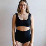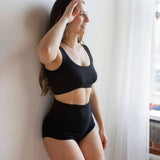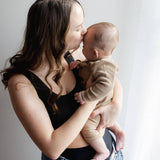 Supportive postpartum bra thoughtfully designed for nursing & your beautifully evolving body. Crafted from ultra-soft TENCEL™ Lyocell Organic Cotton that’s lighter, more breathable and absorbent than standard cotton. This eco-friendly, biodegradable fabric—sourced from sustainably managed forests—offers natural antibacterial properties to help promote comfort and wellness during birth recovery and the early days of breast feeding. Gentle on sensitive skin, good for mama and the planet. Made in Canada.