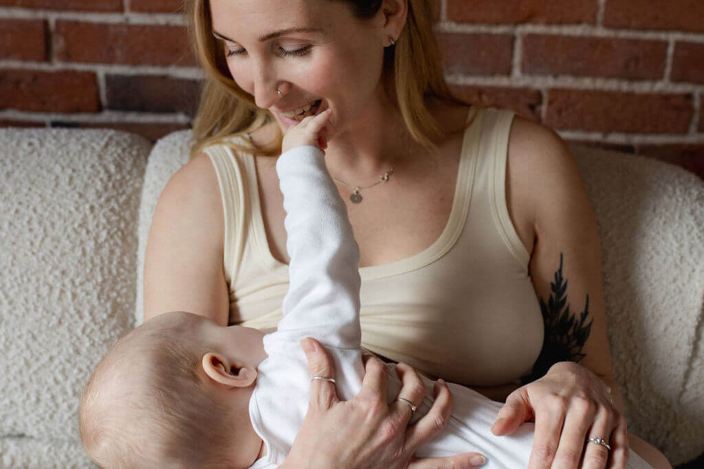 Supportive postpartum bra thoughtfully designed for nursing & your beautifully evolving body. Crafted from ultra-soft TENCEL™ Lyocell Organic Cotton that’s lighter, more breathable and absorbent than standard cotton. This eco-friendly, biodegradable fabric—sourced from sustainably managed forests—offers natural antibacterial properties to help promote comfort and wellness during birth recovery and the early days of breast feeding. Gentle on sensitive skin, good for mama and the planet. Made in Canada.